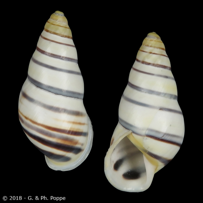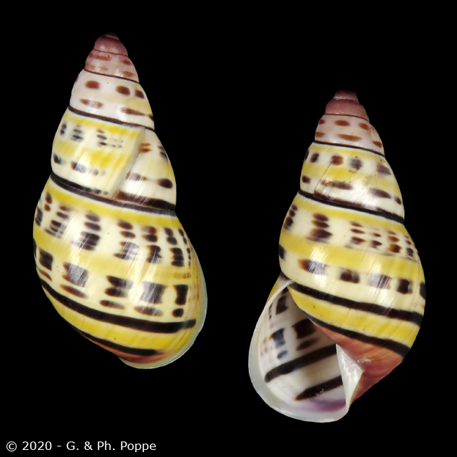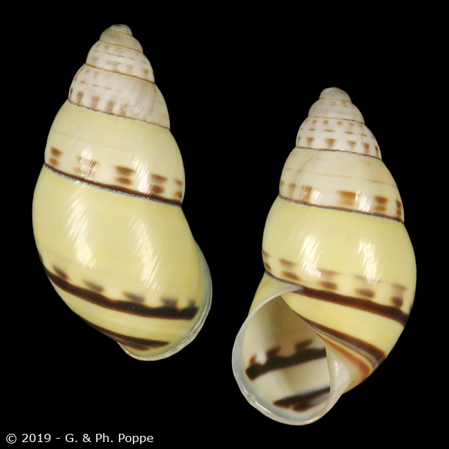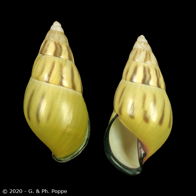 CAMAENIDAE - AMPHIDROMUS Amphidromus aspe F. Haas, 1934 Locality :Vietnam. Dak Lak Province. Remark :From fine to gem, different qualities, check photos, are all reasonably good or better, we removed the poor quality ones. An attractive species. Size :57.9 mm. mm 2.28 inch