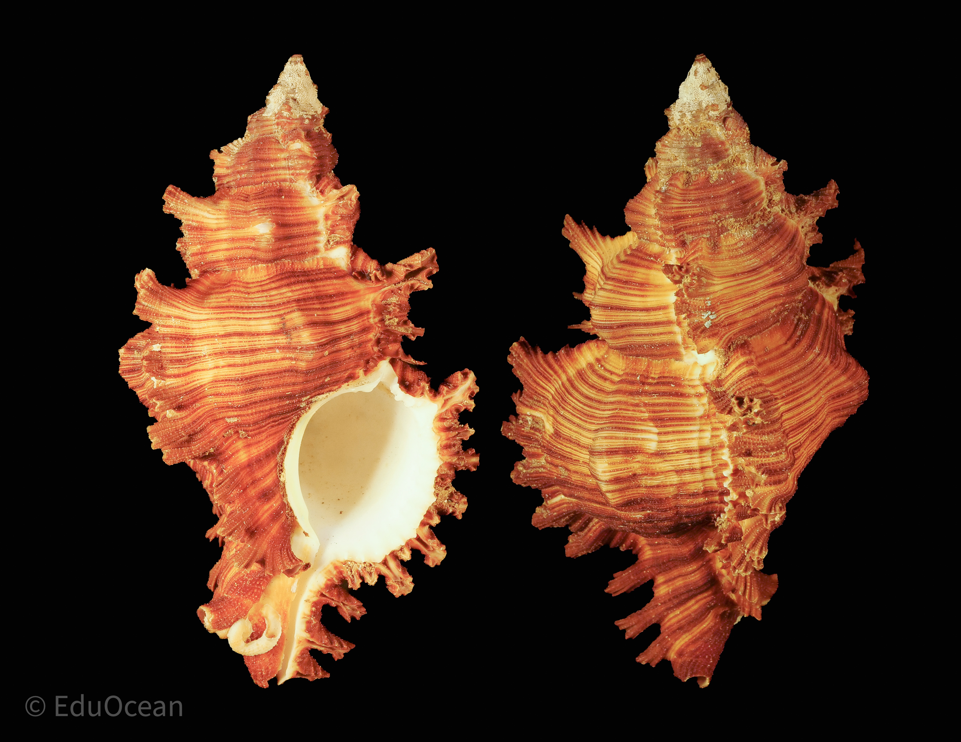 Mollusca (Phylum) Gastropoda (Class) Caenogastropoda (Subclass) Neogastropoda (Order) Muricoidea (Superfamily) Muricidae (Family) Muricinae (Subfamily) Hexaplex (Genus) Hexaplex cichoreum (Species) Hexaplex cichoreum (Gmelin, 1791) 동의어 Hexaplex (Hexaplex) cichoreum (Gmelin, 1791) · alternate representation Hexaplex foliacea Perry, 1811 · unaccepted > junior subjective synonym Murex cichoreum Gme..